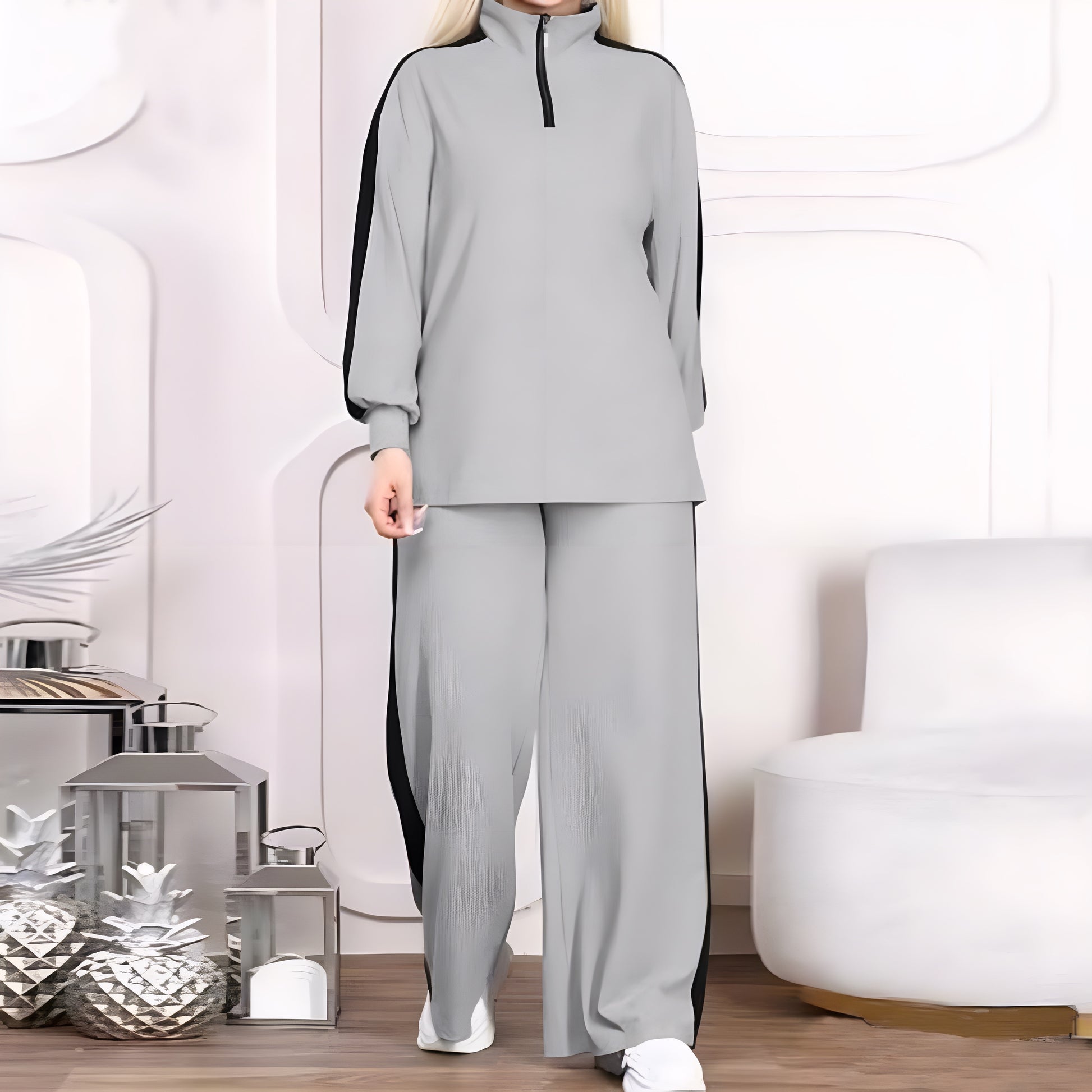 Stay active in style with this sporty 2-piece tracksuit, crafted from premium imported Summer Melton fabric for lightweight comfort.The jacket features a sleek quarter-zip design for a modern touch and easy wear.A bold contrast stripe adds a striking edge, highlighting the athletic look.Perfect for workouts, casual outings, or everyday streetwear with a trendy vibe.
